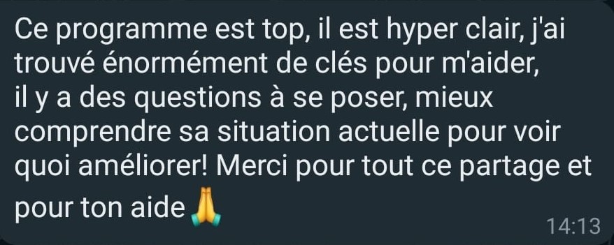 Et c'est pour cela que j'ai également créé la communauté Facebook pour que vous arriviez encore plus facilement à réaliser les différentes actions proposées, en étant pas seul pour que vous puissiez avancer sereinement tout au long du parcours.